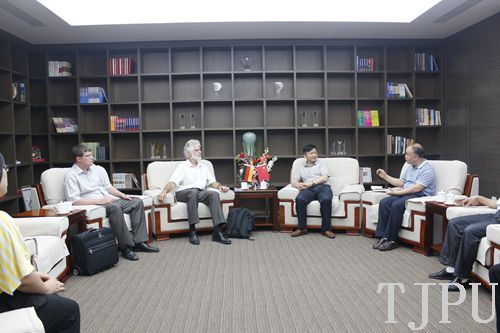 17日上午,在国际交流与合作处处长姜亚明陪同下,德国客人与纺织学院院长陈利、副院长刘雍,研究生院副院长贺晓丽深入讨论了两校未来在联合培养纺织专业博士研究生方面的合作。双方达成共识,两校准备在2015年启动该计划,这将成为继教师互访项目、攻读硕士生项目、2+2双学位项目后的又一重大突破。相信两校会依托于这些项目进一步深化我校纺织学科领域科研合作,共同努力为世界纺织科研领域培养高端人才。当日下午,纺织学院安排马哈提克教授参观了我校科研中心和纺织学院特色实验室,马哈提克教授表达了对我校先进实验设备的赞赏,更坚信了两校未来在纺织科研领域的深化合作。