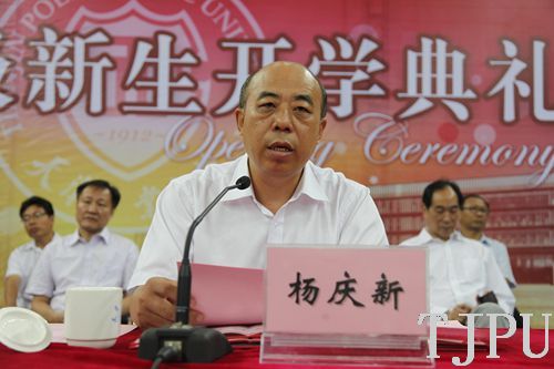 杨庆新校长在讲话中简要介绍了学校的基本情况,并对同学们提出了十个字的殷切希望:善良、和谐、诚信、进取、担当。他勉励同学们要做品德高尚、团结和谐、诚实守信、拼搏进取、勇于担当的人。希望同学们在天津工业大学这片沃土上快乐成长,收获成功,实现自己的大美人生。