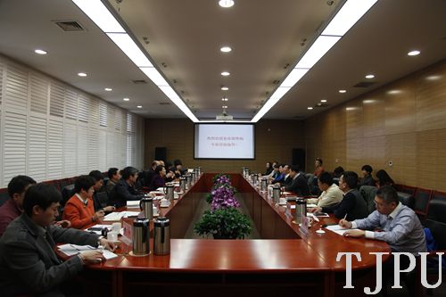 随后,调研人员在会议中心第五会议室召开座谈会,听取张宏伟教授汇报我校多水源利用和绿色用水情况,讨论天津市水资源综合利用的有效措施和方法。张宏伟教授主要依托所承担的国家社科基金重点项目“城市用水与流域水生态环境保护协同发展研究”,从四个方面对“绿色用水理论与实践探索”进行了汇报。第一,城市用水现状与存在问题。张宏伟教授从生态文明建设和依法治国的高度,针对天津水资源和水环境特征,通过分析研究天津城市用水的供给模式、消费状态和管理方式,认为天津在因严重缺水大量外调水的同时,在水资源使用上存在严重的高质低用和使用效率低的问题,提出必须在天津市实施绿色用水行动,将传统的单一用水模式转化为“高质高用、低质低用、减少排放、循环利用”的“绿色用水模式”,实现美丽天津的建设目标。第二,研究内容、方法与成果。课题组在研究过程中构建了城市与流域水生态系统动力学模拟模型,提出绿色用水的新理念和绿色用水的新框架,找到城市用水与流域水生态环境博弈的最佳均衡点求取方法和策略安排,提出适合我国国情的分质供水、按质使用的绿色用水发展策略。第三,大学绿色用水实践探索。依托项目研究成果,我校先行先试,开展绿色用水实践探索,按照“分质供水,按质使用”的原则,主要做了五个方面的探索,包括实施校园分散式与集中式直饮水供给技术与示范工程,校园分散式与集中式污水再生回用技术与示范工程,校园雨水收集、调蓄、处理与生态利用技术与示范工程,校园景观水体生态自净技术与示范工程,建设生态校园多水源管理-用水许可交易GIS管理信息系统。通过实施绿色用水行动,实现了水质达标,产生了经济效益。同时,学校将绿色用水教育纳入环保课程体系,实现了科学研究、工程建设和教育实践的有机结合,在实施节水的同时将科学用水理念和方法在大学生中普及,从根本上促进城市用水与流域水生态环境保护协同发展。第四,天津市绿色用水行动方案建议。课题组从天津工业大学的实践成果中总结经验,对天津市绿色用水行动方案提出九个方面的建议。包括统筹规划、统一配置,推动多水源开发利用;明确各种水源利用原则和使用去向,避免高质低用;通过政策引导、市场推动,营造有利于绿色用水发展的市场环境;细化用水管理,推动绿色用水发展;编制绿色用水标准体系,规范用水行为;完善基础设施配套,解决既有非常规水产能过剩问题;推进分散式生活绿色用水,提高用水效益;加快绿色用水科技研发和推广,实现科学用水;加强绿色用水宣传,普及绿色用水思想等。