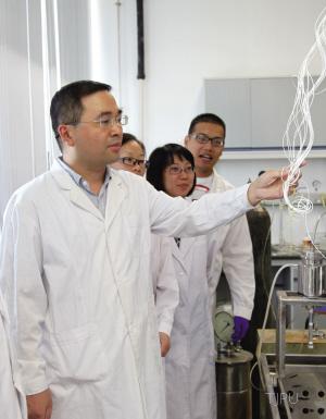 作为“80后”的林立刚积极参与膜国家重点实验室的建设工作,不分昼夜,加班加点。目前,天津工业大学膜基地已成为有广泛社会影响的公共平台,被评为天津市优秀重点实验室,被科技部评为首批优秀培育基地。在此基础上,省部共建分离膜与膜过程国家重点实验室于2015年获科技部批准建设,这是天津市属高校的首个国家重点实验室,标志着天津市科技平台建设、膜领域基础研究取得历史性突破。膜分离技术协同创新中心是天津工业大学乃至天津市的重大机遇,他从申报、汇报、运行等方面做了大量工作,曾连续加班两个多月,经常工作到凌晨,困了累了,就躺在几把椅子上休息一下。最终膜分离技术协同创新中心落户天津,成为服务天津发展的创新平台。