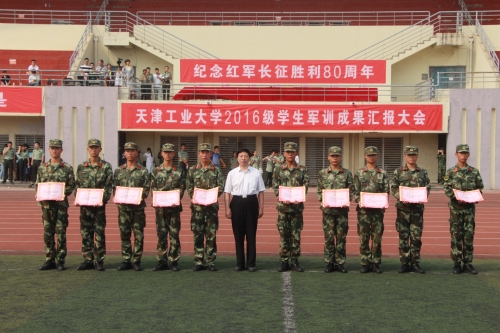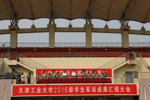 2016年9月24日上午,天津工业大学2016级学生军训成果汇报大会在工大望星运动场隆重举行。全体新生组成13个营接受了检阅,他们身着戎装,以最饱满的状态展示了为期15天的军训成果。天津警备区学生军训工作办公室主任辛维刚大校,我校党委书记张宏伟,副校长王晨亮,天津市西青区人民武装部副部长程起亮上校,武警天津总队滨海新区支队副参谋长任民中校,武警天津总队滨海新区支队一大队大队长赵志勇少校,天津市教委体卫艺处处长张华泉等领导出席本次活动。