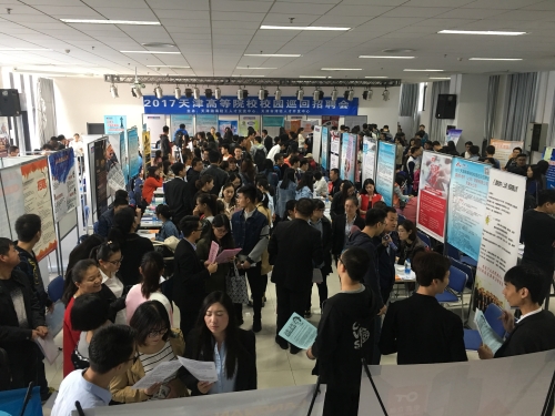10月13日、14日,我校在艺缘活动中心连续举行了两场大型招聘会,标志着2017届毕业生“就业季”正式拉开帷幕。招聘会汇集了国网电商物资科技有限公司、日立楼宇设备制造(天津)有限公司、天津三星电子公司、天津用友软件技术有限公司在内的各类企业150余家,现场吸引了超过2000余人次的毕业生。面对首场大型招聘活动,学生们表现出积极的心态、饱满的热情,踊跃与企业招聘人员交流,寻求适合自己的就业岗位。