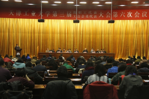 2016年12月13日,我校第三届教职工代表暨工会会员代表大会第六次会议在学校学术中心举行。会议议题为讨论表决《天津工业大学岗位绩效工资实施方案及三个配套文件》(审议稿)、讨论表决《天津工业大学教职工公寓选用办法》(审议稿)。