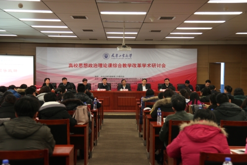 12月22日至23日,“高校思想政治理论课综合教学改革”学术研讨会在天津工业大学隆重召开。北京大学陈占安教授,教育部高等学校社会科学发展研究中心主任王炳林教授,天津市委教育工委副书记、市教委副主任杨清海,天津市委宣传部理论处处长、天津市哲学社会科学规划办公室主任袁世军,北京高校中国特色社会主义理论研究协同创新中心(北京工业大学)、北京工业大学马克思主义学院院长李东松,天津工业大学党委书记张宏伟,天津工业大学副校长程博闻,教育部高校思想政治理论课“毛泽东思想和中国特色社会主义理论体系概论”分教学指导委员会委员、天津工业大学马克思主义学院院长张健华出席,全国37所高校马克思主义学院的领导和教师,媒体记者,以及学校职能部门、学院负责人,马克思主义学院教师和全体研究生共120多人参加会议。研讨会围绕学习习近平总书记在全国高校思想政治工作会议上的讲话、高校思想政治理论课综合教学改革、将思想政治工作贯穿教育教学全过程等问题深入研讨。张健华院长主持开幕式。