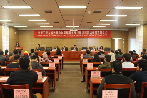 程博闻副校长在欢迎辞中表示,在中国纺织工业联合会、中国纺织服装教育学会、巴基斯坦旁遮普省、巴驻华使馆商务处等多方支持和共同努力下,天津工业大学为巴基斯坦旁遮普省培养纺织服装师资培训班于2017年2月28日正式启动。作为中国国内纺织类高校的佼佼者,天津工业大学在纺织服装领域有着深厚的学术、科研基础,愿为进一步积极推动中国政府“一带一路”国家战略和巴基斯坦“2025愿景”做出贡献。程博闻副校长同时也寄语培训班授课教师和全体学员,希望他们充分利用好这两个月的培训时机,互相学习,互相提高。