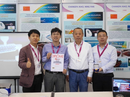 2017年3月28日,世界著名的发明展——日内瓦国际发明展(第45届)在瑞士日内瓦Palexpo会展中心开幕。我校肖长发教授科研团队与天津膜天膜科技股份有限公司合作开发“连续油水分离功能材料及装备”和“同质增强型中空纤维膜”成果取得一金一银的佳绩,这也是我校首次参加日内瓦国际发明展并获奖。