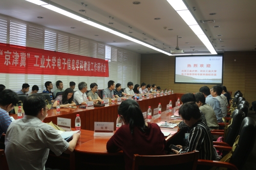 为加强我校电子信息学科建设,拓展校际间的合作内容,加强合作广度和深度,2017年5月24日,在天津工业大学会议中心第五会议室召开了“京津冀工业大学电子信息学科建设工作研讨会”。会议由电子信息学院院长肖志涛教授主持。我校副校长赵宏出席,来自北京工业大学、河北工业大学、天津工业大学三校电子信息相关学院的信息与通信工程、电子科学与技术等学科方向的专家学者、学科带头人、专业负责人和骨干教师,以及三所高校研究生院领导共40余人参加了本次会议。