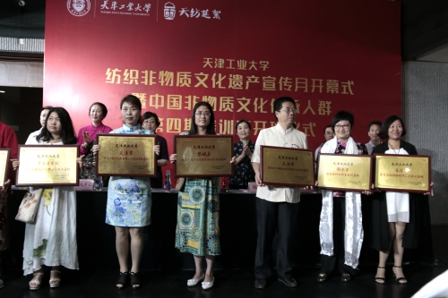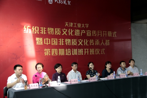 2017年6月1日,天津工业大学纺织非遗宣传月暨第四期中国非遗传承人群研培计划培训班在我校艺术与服装学院拉开帷幕。青海省黄南州妇女联联合会党组书记、主席吉毛才让,青海省黄南州政府办公室副主任李雨春,甘肃省妇联宣传部副部长何适彣,天津市文化广播影视局副巡视员康书祥,天津市文化广播影视局非遗保护处处长李茁,我校副校长赵宏等相关领导出席,“天津工业大学纺织类非物质文化遗产产学研联盟” 36家企业,来自山西、河北、甘肃、青海等地的60名学员以及我校有关单位负责人参加了开幕式。本次活动由天津市文化广播影视局、青海省黄南州政府与我校联合主办。