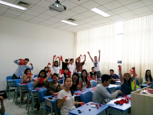 在民俗课上,老师向留学生们介绍了中国结历史和发展,并展示了精美的中国结作品。留学生们认真聆听老师介绍、并在短短两个小时时间内,每位留学生都独立完成了一件中国结作品。活动中,各国留学生们对中国传统的民俗手工艺表现出了浓厚的兴趣。