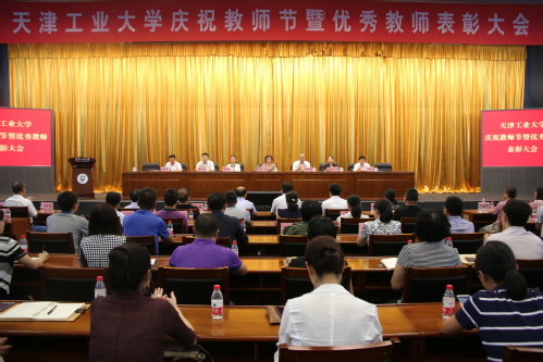 庄严的国歌声中,庆祝教师节暨优秀教师表彰大会正式开始。全体参会人员观看了黄大年先进事迹视频宣传片《时代呼唤更多的“黄大年”》。组织部长刘宏韬同志宣读了《天津工业大学“学习黄大年同志先进事迹做‘四有’好教师”倡议书》,向全校教师发起了“学习黄大年同志先进事迹,做‘四有’好教师”的倡议,号召广大教师以黄大年同志为榜样,坚定理想信念、志诚爱国奉献、积极建功立业,自觉做“四有”好教师。