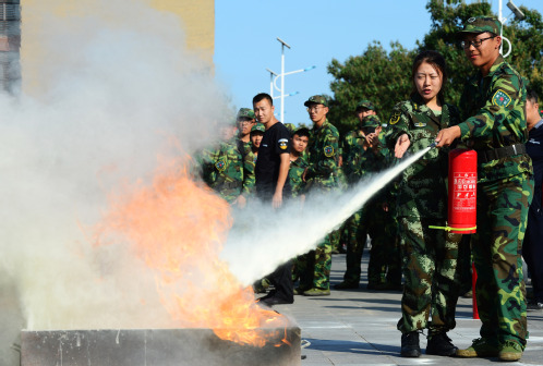 9月27日,天津工业大学在全市高校中率先将消防培训和演习纳入军训。西青消防支队为1000余名新生代表做了一场生动形象的消防讲座,并讲解了灭火器的使用方法。经此培训,该校每个新生宿舍都至少有一人实操过并会使用灭火器。