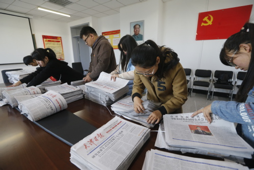 十九大报告激励人心,天津工业大学提前谋划,把学习宣传贯彻十九大精神当作当前和今后一个时期最重要的政治任务,在组织师生集中学习、师生自发学习等各种学习活动火热进行时,天津工业大学提前关注并期待十九大报告全文正式发表并提前跟相关报社联系, 29日收到了《人民日报》、《光明日报》、《天津日报》等党报党刊共33000余份,确保全校师生每人一份学习材料,为进一步开展原原本本学报告提供材料,30日学校将全部报纸发放给师生。