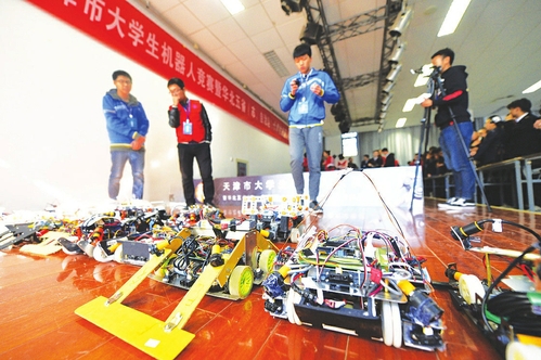 10月29日,第五届天津市大学生机器人竞赛暨华北五省(市、自治区)大学生机器人大赛天津赛区竞赛在天津工业大学举行。本次比赛包括机器人创意设计赛、舞蹈机器人赛、机器人武术擂台赛等七个类别的竞赛。