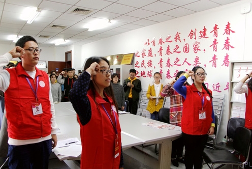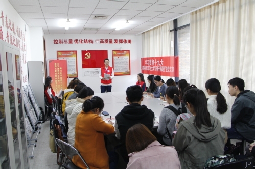 张瑞等同学赴纺织学院本科生第一党支部活动室,开展“砥砺前行,青春担当”领读活动,并带领党员重温入党誓词。