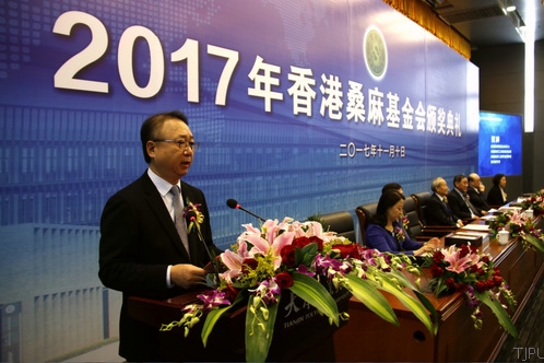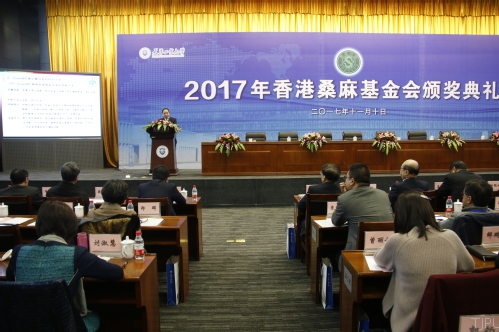 香港桑麻基金会受托人、中国纺织工业联合会会长、中国纺织工程学会理事长孙瑞哲先生致词。他从中国纺织行业近几年的发展,香港桑麻基金会的精神传承,2017年度桑麻奖学金、奖教金和科技奖的基本情况,中国纺织行业近年来科技发展情况四个方面向与会人员进行了全面的介绍。