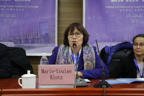 接着,来自德国Rhein-waal 大学的玛丽·路易斯·克劳斯教授代表国外嘉宾进行发言。她表示,十分荣幸受到邀请参加第一届“研究生国际纺织论坛”,认为论坛对提升全球的纺织专业研究生培养质量、促进学术交流与合作、为“一带一路”及全球纺织工业提供高水平人才支持具有重大意义。