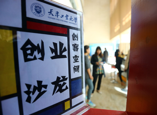 据介绍,相关部门不仅对高校众创空间给予100万至500万元的资助,还设立种子基金,用于收购学生的创新产品,对初创项目给予信贷支持,同时组建服务专员团队,进驻高校众创空间,提供“一站式”服务。图为天津工业大学的校园众创空间。