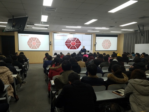 2017年12月20日下午,我校邀请中央民族大学信息工程学院的林旺教授,在第二公共教学楼沉浸式直播教室作了题为《新时代、新技术、新课程——泛雅+学习通教学实践》的讲座。我校共有16个教学单位135名教师聆听了讲座。