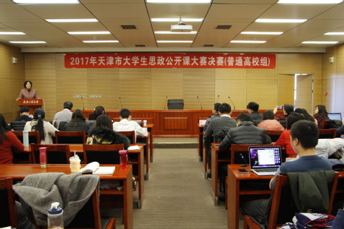 12月24日,由天津市委教育工委、天津市教委主办、天津工业大学承办的2017年天津市大学生思想政治理论课公开课(普通高校组)决赛在我校会议中心举行。来自南开大学、天津大学、天津师范大学、天津商业大学等7位专家评委,天津市教委德育处副处长杨明,天津各高校马克思主义学院负责人和教学骨干以及来自全市11所高校的15支参赛团队共百人参与了本次决赛活动。
