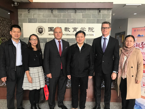 2018年3月13日,澳大利亚伍伦贡大学负责国际事务的副校长Alex Frino教授和国际交流处处长Brett Lovegrove一行3人到我校访问。我校副校长程博闻、国际交流与合作处处长张兴国、电气工程与自动化学院党委书记牛萍娟和电子与信息工程学院院长肖志涛会见了客人并商讨深化两校间合作具体事宜。