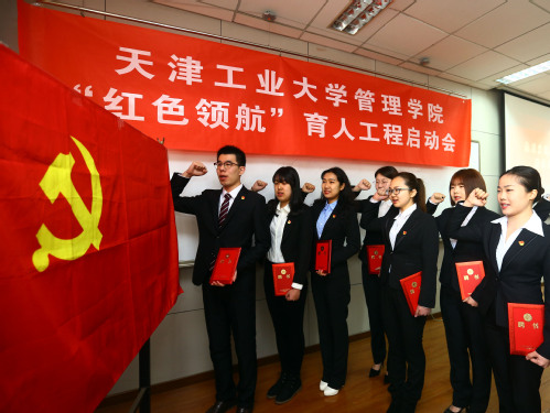 3月21日,天津工业大学正式启动”红色领航”育人工程.启动会场进行了“五位一体”教育平台前期工作视频介绍,为“我是主讲人”精品党课巡讲团颁发聘书,主讲人团队在党旗下庄严宣誓。