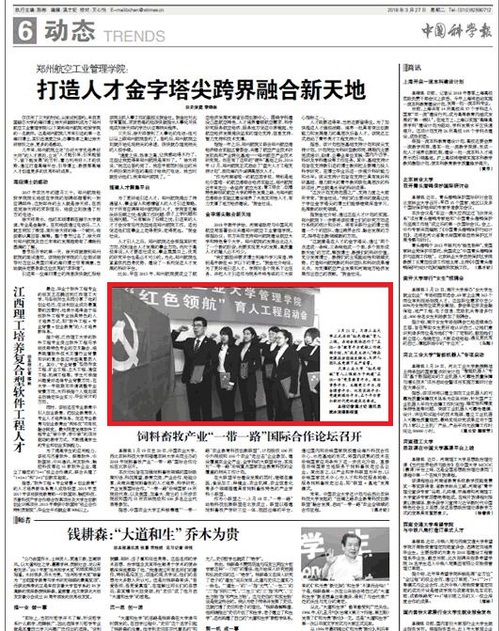 2018年3月27日,《中国科学报》第6版以《图片新闻》为题对我校做了报道,现将全文转发如下,以飨读者。