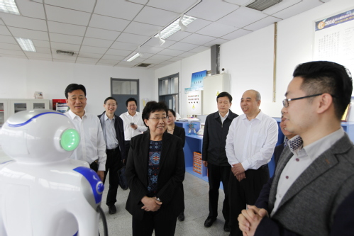 在大学生创新创业实践基地,曹小红副市长实地察看了学校智慧教室、创新创业实验室,观看了近年来我校大学生学科竞赛、创新性研究成果,学生研发的智能机器人、慧鱼机械创新设计吸引了曹小红副市长一行的驻足。曹小红副市长还详细了解了学生的创新创业情况,对我校作为天津市唯一地方院校入选全国深化创新创业教育改革示范高校表示充分肯定。