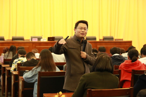 倪明胜结合十八大以来中国特色社会主义取得的历史性成就,尤其是中国社会主要矛盾的转变,全面分析了中国特色社会主义进入新时代的背景和依据。重点从“科学内涵”“主要内容”“核心要义”“精神实质”“逻辑结构”五个方面全面解读了习近平新时代中国特色社会主义思想的内容体系,深刻阐述了习近平新时代中国特色社会主义思想的创新价值。他还结合辅导员、班导师工作实际畅谈了学习贯彻习近平新时代中国特色社会主义思想、十九大精神的实践路径。报告逻辑清晰、内容详实、分析透彻、语言生动,引起师生的强烈共鸣。