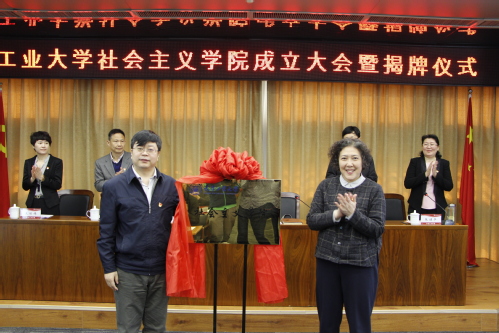 姜国斌处长和连洁书记共同为天津工业大学社会主义学院进行了揭牌。(审稿:党委统战部 张健华 )