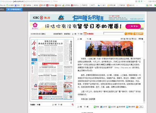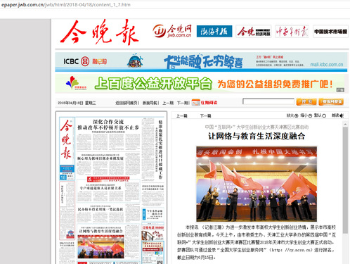 2018年4月18日,《今晚报》第1版以《让网络与教育生活深度融合》为题对我校做了报道,现将全文转发如下,以飨读者。