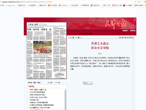 2018年4月21日,《天津日报》第5版以《天津工大成立社会主义学院》为题对我校做了报道,现将全文转发如下,以飨读者。
