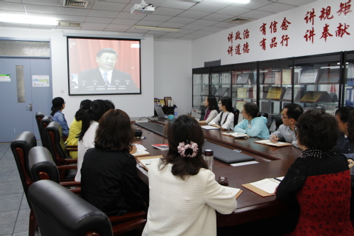 校党委理论学习中心组全体成员在行政中心512集中收看大会实况,并交流学习体会。