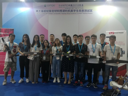 2018年5月16-17日,由中国航空学会、SAMPE中国大陆总会主办,美国波音公司、中航复合材料有限责任公司赞助支持的第十届SAMPE超轻复合材料机翼学生竞赛在上海光大会展中心举行。在本次竞赛中,我校材料学院的学生们与来自国内知名航天、航空院校的75支学生团队同台竞技,获得机翼承载性能二等奖一项、三等奖三项,机翼设计理念海报二等奖一项、三等奖一项,我校教师王晓旭获得机翼学生竞赛最佳指导老师奖。