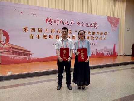为深入学习贯彻习近平新时代中国特色社会主义思想和党的十九大精神,进一步加强天津高校思政课青年教师教学能力建设,6月2日,由市委教育工委、市教委、市总工会主办的第四届天津市高校思想政治理论课青年教师教学技能大赛暨教学展示在天津师范大学举行。我校马克思主义学院青年教师唐亮、王立群分别获得本次大赛一等奖、二等奖。