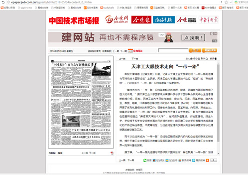 2018年5月4日,《中国技术市场报》第A2版以《天津工大膜技术走向“一带一路”》为题对我校做了报道,现将全文转发如下,以飨读者。