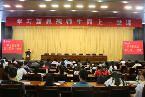 为深入学习贯彻习近平新时代中国特色社会主义思想,6月19日下午,我校在学术中心以示范课程的形式举行“学习新思想 师生同上一堂课”活动。本次示范课程由我校马克思主义学院唐亮、王立群、李博、赵丽华等四位青年教师授课,并特别邀请到了南开大学马克思主义学院杨谦教授做现场点评。校领导连洁、杨庆新、刘亚男出席,相关学生代表300余人参加。活动由党委宣传部部长王军杰主持。