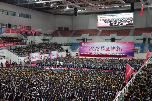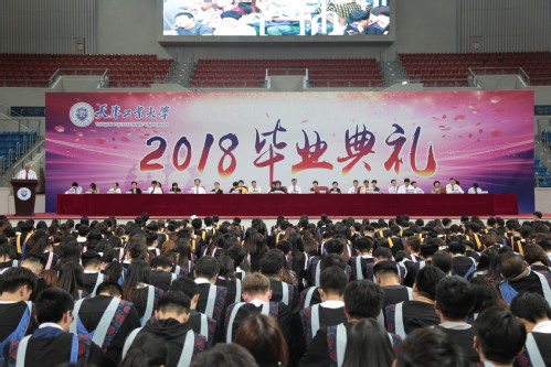 木槿花开,毕业季。又到了与母校正式说“再见”的日子,学校体育馆内充满庄重与惜别相交织的浓浓气息。2018年6月22日上午9时,天津工业大学2018届本科生毕业典礼在学校体育馆隆重举行。校党委书记连洁,校党委副书记、校长杨庆新,校领导刘亚男、赵宏、夏长亮、裴军、王晨亮、程博闻出席典礼仪式,学校相关单位负责人、全体应届毕业生和部分毕业生家长参加典礼。仪式由刘亚男副书记主持。
