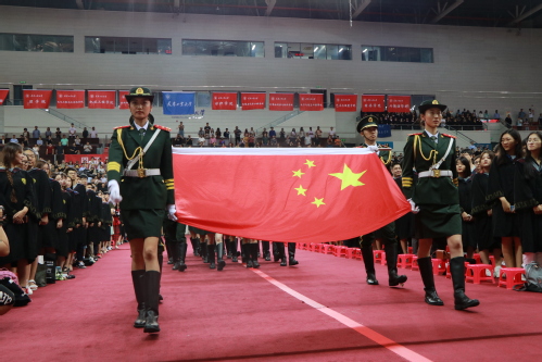 毕业典礼开始,国旗班举行庄严的升旗仪式,全场起立集体高唱国歌。赵宏副校长宣读了《关于表彰天津工业大学2018届优秀毕业生的决定》,共有630名优秀毕业生受到表彰。学校号召全体学生向优秀毕业生习,努力提高自身的综合素质,把自己努力培养成社会主义事业的合格建设者和可靠接班人。