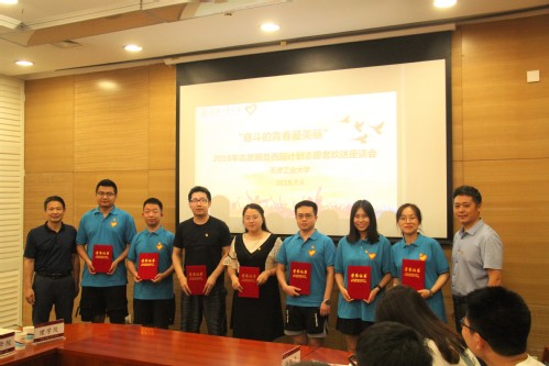 7月6日下午,天津工业大学2018年志愿服务西部计划志愿者欢送座谈会在会议中心第五会议室举行。校党委副书记刘亚男出席并讲话,组织部、宣传部、学工部、教务处、研究生院、校团委、相关学院负责人及我校15名西部计划志愿者参会。会议由校团委书记范甜主持。
