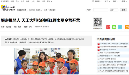 2018年7月26日,北方网以《解密机器人 天工大科技创新红领巾夏令营开营》为题对我校做了报道,现将全文转发如下,以飨读者。