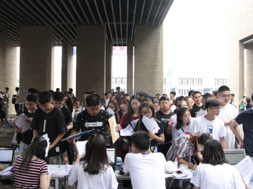 在励志广场外,还有一大早就在各个车站负责接站的学长学姐。在各个宿舍楼门口,还有热心登记的宿管工作人员。相信在所有学长学姐及老师的热情欢迎下,2018级的新生能很快融入天工大这个大家庭,享受在天工大的4年青春!