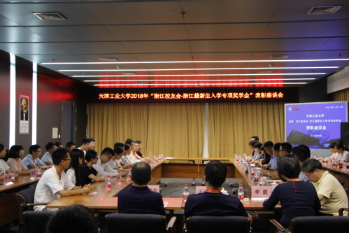 2018年9月6日下午,我校“天津工业大学浙江校友会——浙江籍新生入学专项奖学金”设立及颁奖仪式在学术中心第三会议室举行。浙江校友会会长、棉86级校友陈尚正先生,浙江校友会秘书长、棉88级校友柴文林先生等10余位校友,党委宣传部、党委学工部、教务处相关负责人,相关学院党委副书记、2018级获奖新生和高年级学生代表共60余人参加了表彰座谈会。会议由党委学工部部长张玉波主持。