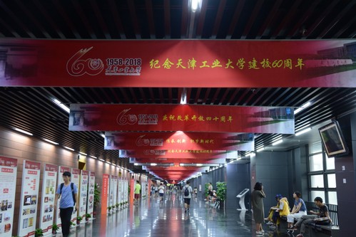 为庆祝天津工业大学建校60周年和改革开放40周年,传承文深德厚的优良传统,2018年9月5日,天津工业大学建校60周年暨改革开放40周年成就图片展在图书馆开展。图片展以“党建思政 领航天工”“工勤业精 品牌天工”“励学笃行 创新天工”“日月经纬 育人天工”“多元合作 开放天工”“和谐美丽 文化天工”等六大板块,通过60张展板、600余张精选的图片生动展示学校在人才培养、科学研究、社会服务、文化传承创新、国际交流合作各方面取得的辉煌成就。展览气势恢宏,在图书馆一楼的长廊里横贯东西,让人油然而生自豪感。