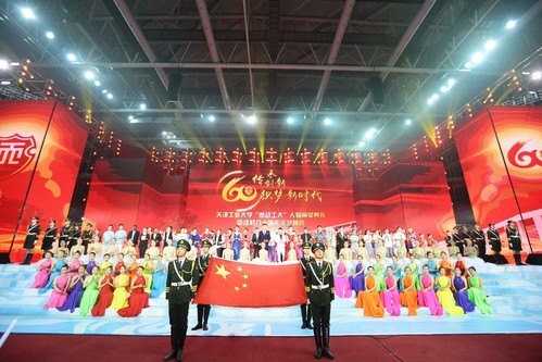 甲子天工,共庆华诞。9月7号晚,天津工业大学“感动工大”人物颁奖典礼暨建校六十周年文艺晚会在学校体育馆举行。校领导连洁、杨庆新、刘亚男、赵宏、夏长亮、裴军、王晨亮、程博闻,以及社会各界嘉宾、师生代表和返校校友3500余人到现场参加活动,全球校友通过天津工业大学官方微博、微信公众号等渠道观看直播,共享校庆喜悦,感受家的温暖。