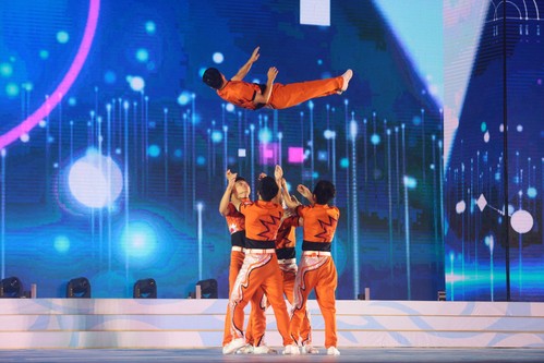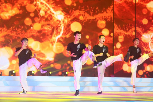 扬,乐动青春。舞蹈《选择》、学校轮滑社、跆拳道社和双节棍社带来的表演、国际教育学院留学生的舞蹈《斯里兰卡》、京剧舞蹈《梨花颂》、街舞表演、健美操表演,都为现场观众带来震撼的视觉享受。天津全运会上由天津工业大学学生志愿者编排的《美丽中国走起来》,被原汁原味地带到了晚会现场,一浪浪起伏的扇舞,掀起一片橙黄色的海洋,诉说着天工大精神,展现着天工大风采。