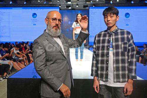 9月7日,维多利亚的秘密创意总监MR.RENE走进天津工业大学,与该校服装表演专业的师生进行互动交流。(中新社记者佟郁摄)