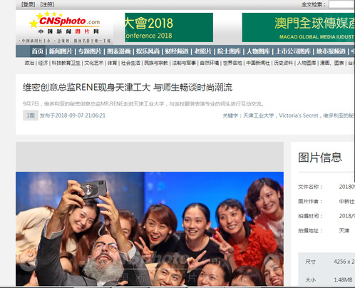 2018年9月7日,中国新闻图片网以《维密创意总监RENE现身天津工大 与师生畅谈时尚潮流》为题对我校做了报道,现将全文转发如下,以飨读者。