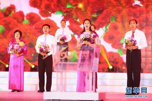 9月7日晚上,天津工业大学的老校友、教职工、大学生欢聚在校内的体育馆,用文艺的形式迎接学校60华诞。新华网发(沈岳 摄)