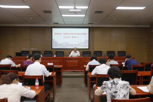 7月16日下午,我校在会议中心第七会议室召开学习贯彻新时代全国高等学校本科教育工作会议精神大会。校领导连洁、杨庆新、刘亚男、赵宏、夏长亮、程博闻出席,各职能部门主要负责人,各教学单位主要负责人、教学副院长、学院副书记参加。会议由校党委副书记、校长杨庆新主持。