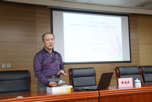 10月10日下午,天津工业大学辅导员素质能力提升专题培训第五场报告会在会议中心第七会议室举行。“时代楷模”、大连海事大学教师曲建武教授应邀来我校作了题为《不忘初心、牢记使命、培养德智体美劳全面发展的社会主义建设者和接班人》的报告,全校100多名辅导员聆听了报告会。报告会由党委学工部部长张玉波主持。
